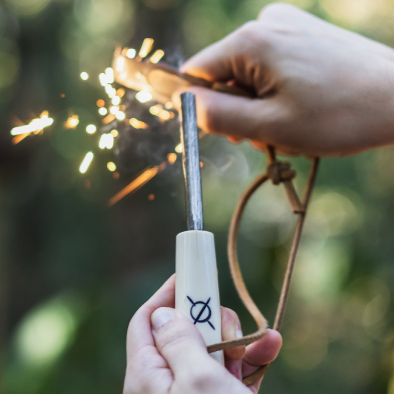 Handle height: 2 1/2 in (63 mm) Handle width: 5/8 in (16 mm) Handle length: 15/16 in (23 mm) Ferro rod length: 2 7/8 in (72 mm) Ferro rod diameter: 3/8 in (9 mm) Striker length: 2 3/4 (70 mm) Striker width: 1 in (25 mm) Leather cord: 20 in (50 cm)
